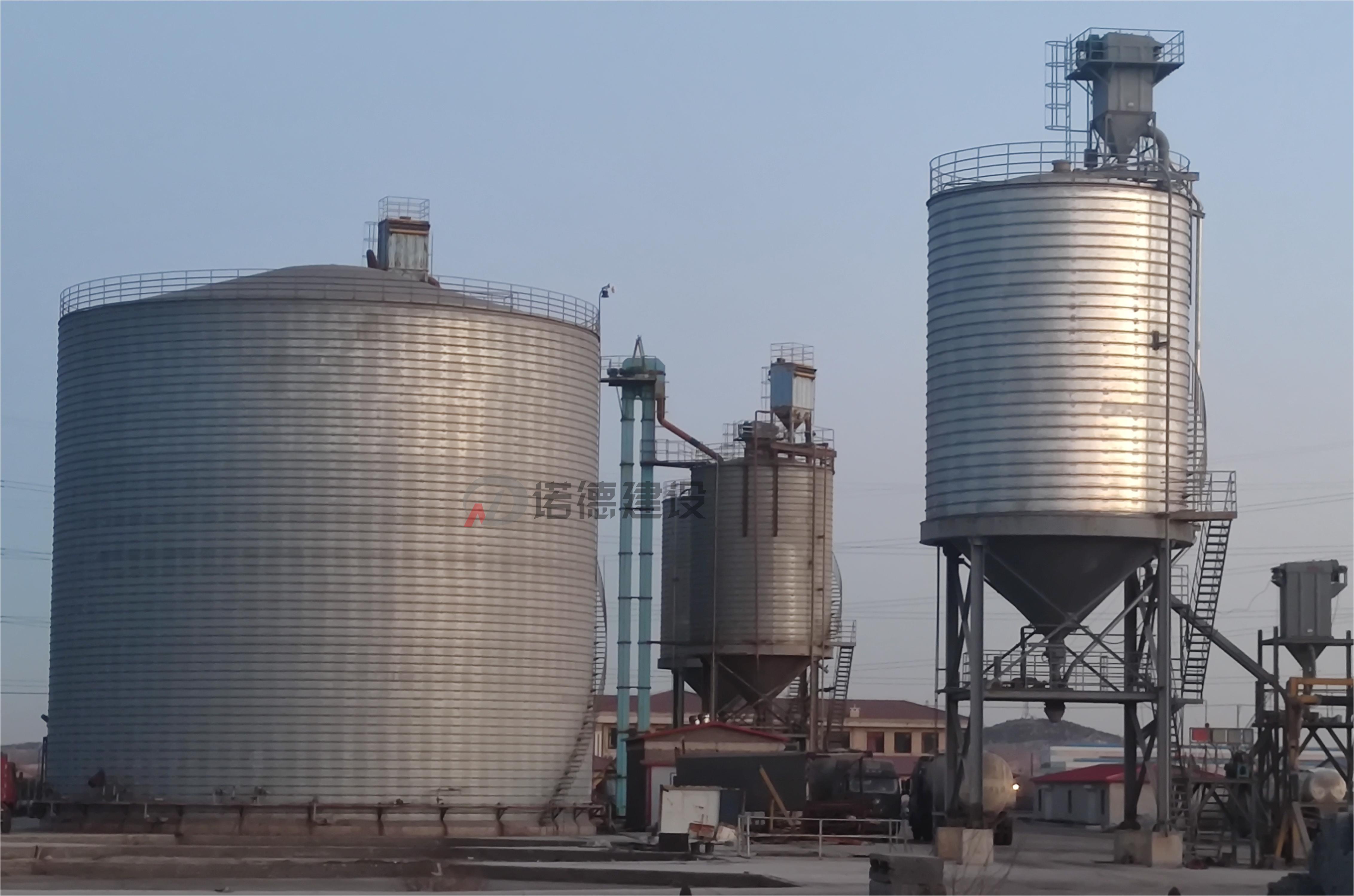 单库容量500-10000m³--同时可组建更大容量的储库群;主要用来储存液态、颗粒状、粉状物料;如:水泥、粉煤灰、油脂、粮食等,可根据场地及厂方要求建成一字型、品字型、器字型、单排型或多排型仓(库)或仓(库)群。
